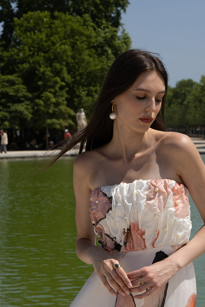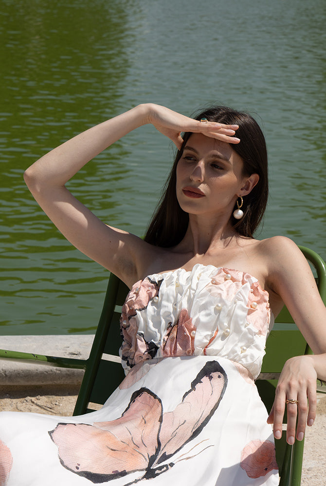 Each piece in our collection is a tribute to love and celebration—hand-ruching flows like poetry, hand-dyed ombre hues echo Parisian sunsets, and every detail carries patience, skill, and romance. Created for life’s milestones—pre-wedding portraits, honeymoons, sundowners, or baby showers—these clothes tell timeless stories of happiness and anticipation, from the Seine to Montmartre.