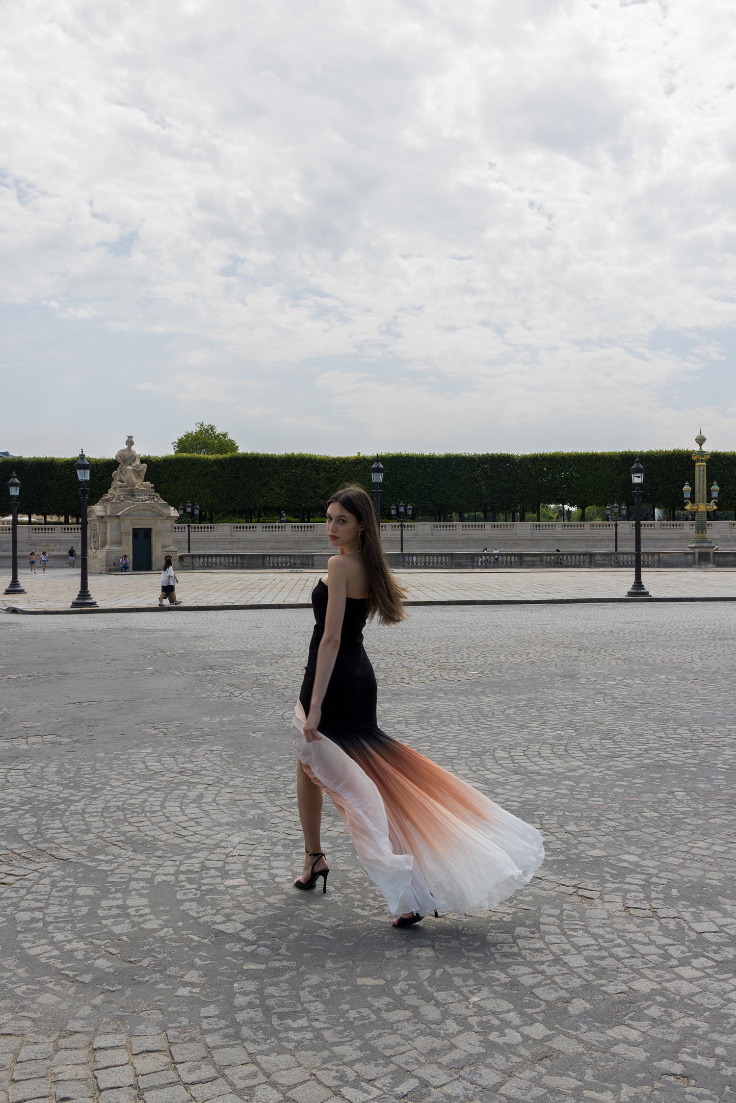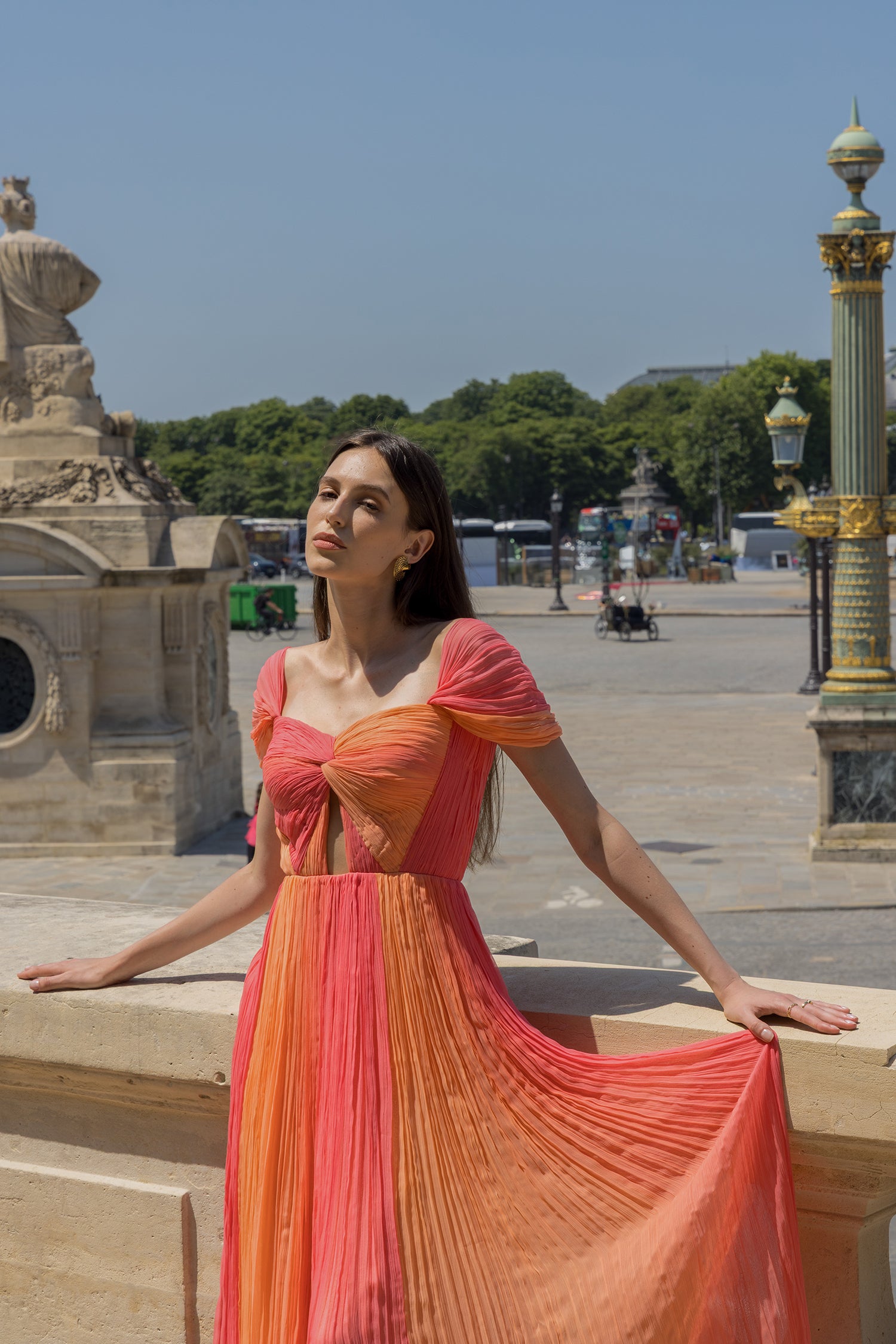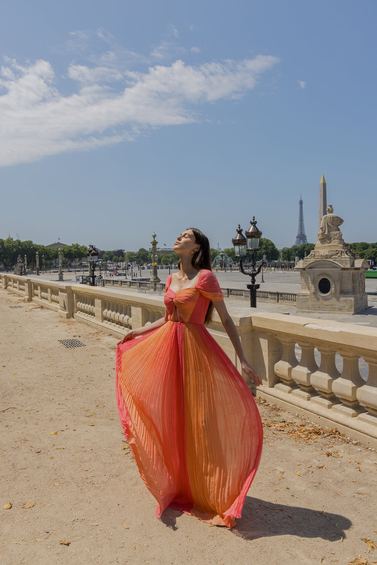 Each piece in our collection is a tribute to love and celebration—hand-ruching flows like poetry, hand-dyed ombre hues echo Parisian sunsets, and every detail carries patience, skill, and romance. Created for life’s milestones—pre-wedding portraits, honeymoons, sundowners, or baby showers—these clothes tell timeless stories of happiness and anticipation, from the Seine to Montmartre.