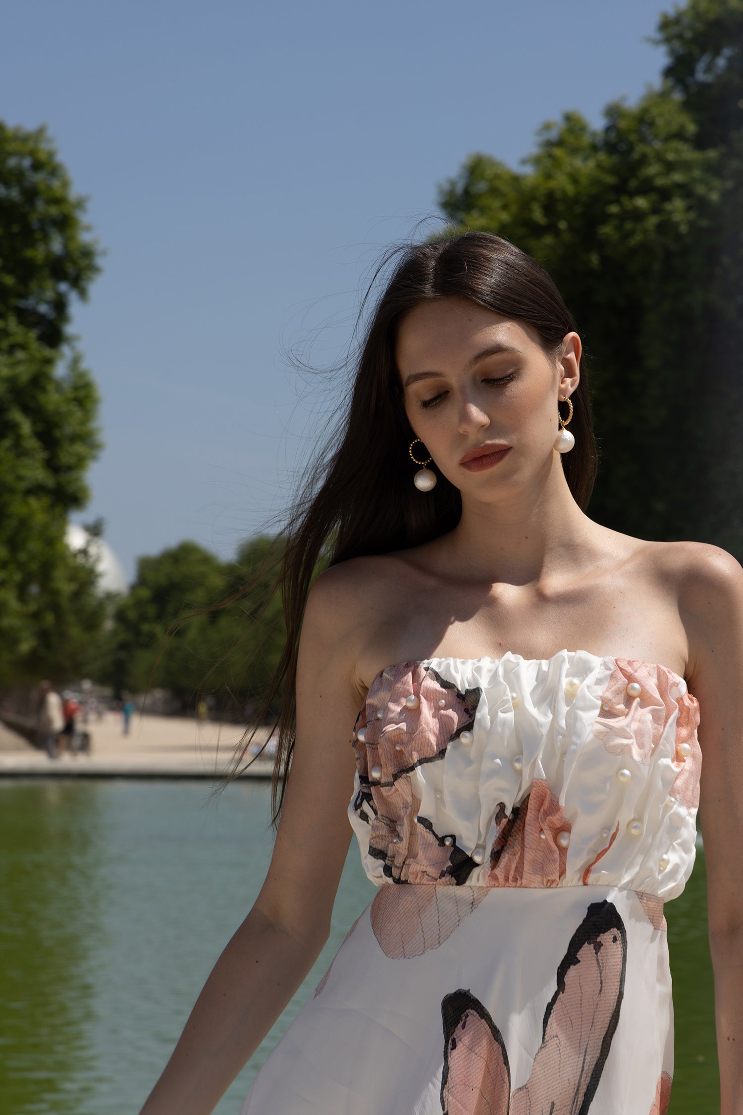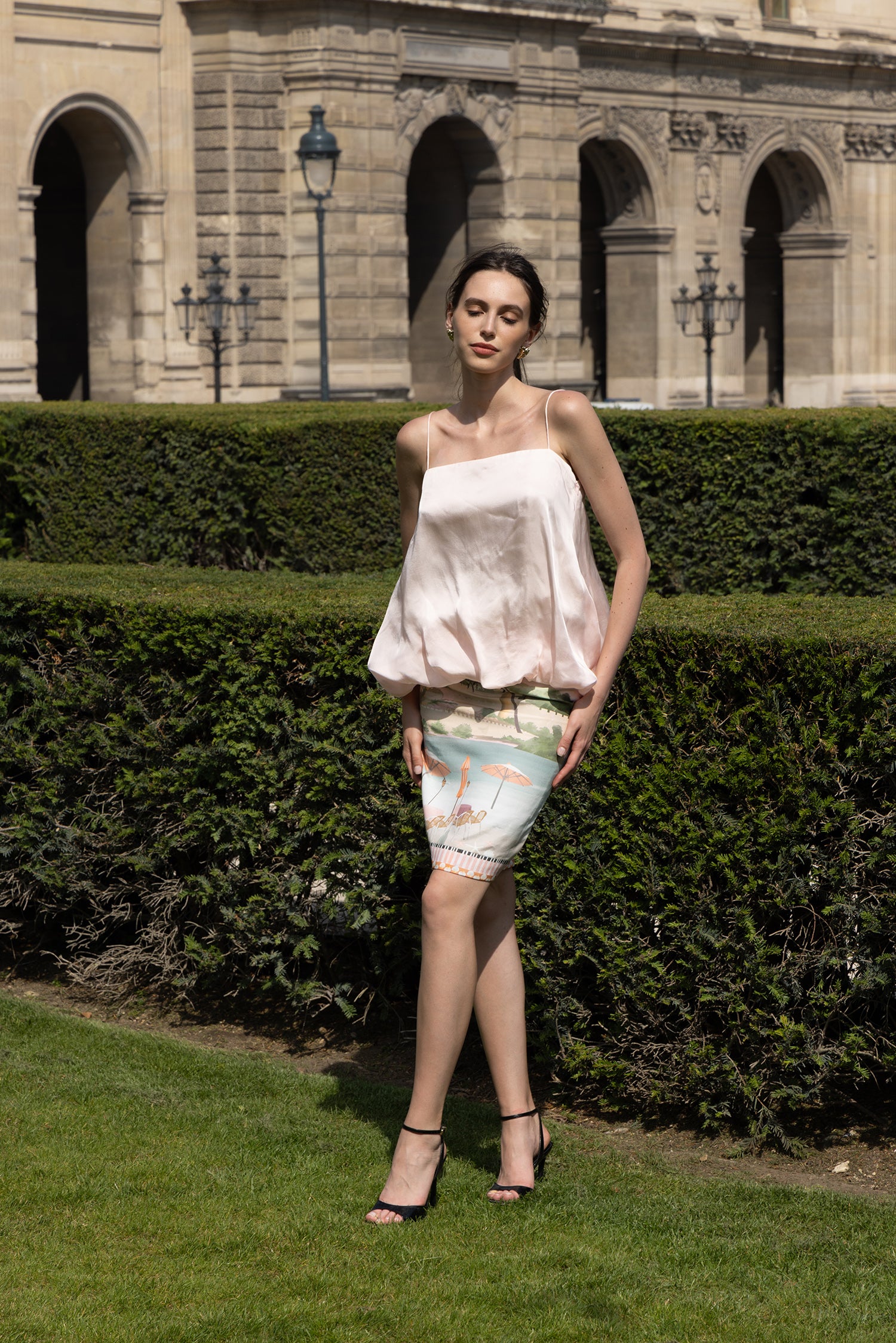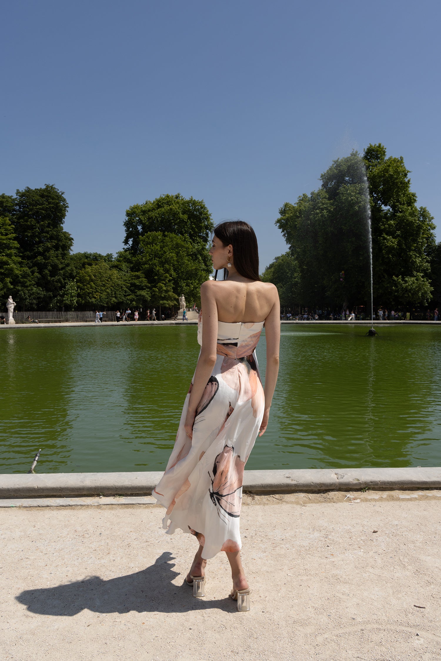 Each piece in our collection is a tribute to love and celebration—hand-ruching flows like poetry, hand-dyed ombre hues echo Parisian sunsets, and every detail carries patience, skill, and romance. Created for life’s milestones—pre-wedding portraits, honeymoons, sundowners, or baby showers—these clothes tell timeless stories of happiness and anticipation, from the Seine to Montmartre.