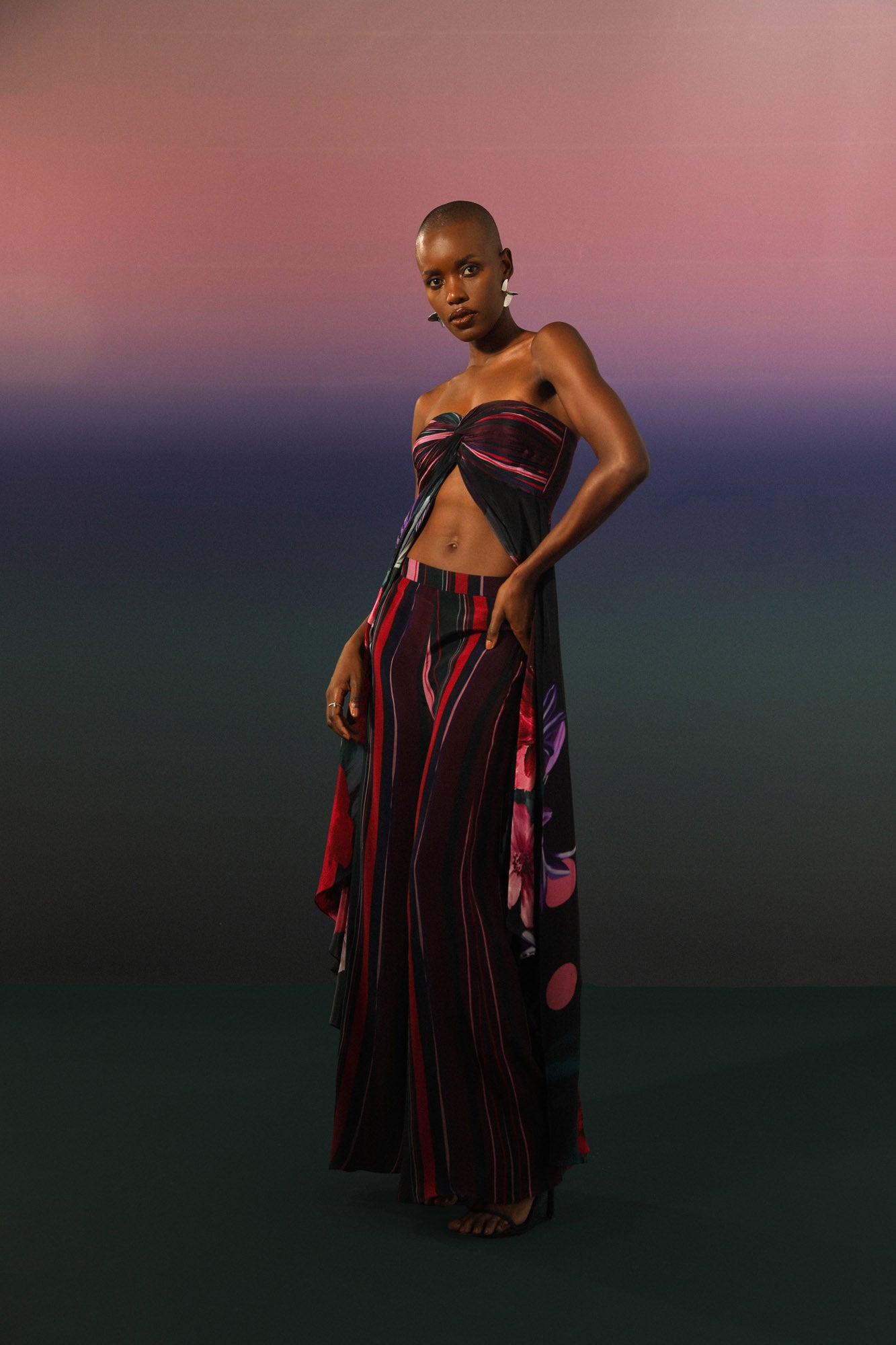 Allurr Garden Set is a two piece set that includes a tunic with a sweetheart neckline , pleated yoke and front slit paired with flared pants. The pants have a smooth waistband in the front and a soft elasticated back for a perfect fit.