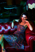 Abstract and Hexagon Sequin layered corset dress is padded and structured and supported with bonings.