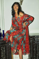 Multi color Feather print kaftan in crepe with bustier in mashru