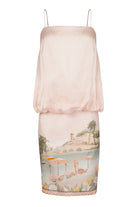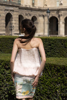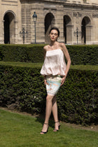 A canvas of coastal charm, this printed skirt by Khushbu Rathod Label captures the essence of a tranquil seaside escape. Rendered in soft pastels, the scenic artwork features beach umbrellas, lounging chairs, and lush greenery set against serene waters. The tailored silhouette flatters effortlessly, while the scalloped hem adds a playful finish. Style it with a solid top for a chic, vacation-ready look that speaks of leisurely elegance.