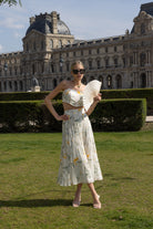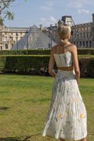 A soft and structured silhouette, this floral corset top features a square neckline and delicate spaghetti straps. Crafted in a botanical print with soft yellow tulips and leafy greens, it's designed to contour the body while offering a fresh, feminine vibe. Pairs beautifully with both matching skirts or high-waisted trousers for a chic resort-ready look.